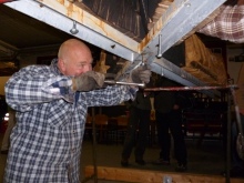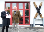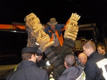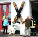 Erstmals wurde eine Station öffentlich auf- gestellt. In einer spektakulären Aktion am Samstag abend wurden Teile der Skulptur von der Feuerwehr geflämmt, angepasst und dann unter großem Aufwand montiert. Für die Gäste war dies spannender als die eigentliche Einweihung am nächsten Tag.